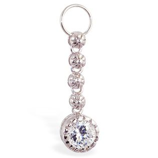 TummyToys swingers are charms that slide right over your sleeper clasp. This solid silver floating charm features a long daisy chain adorned with a 7mm cubic zirconia gem (sleeper sold seperately).