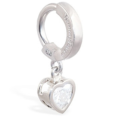 Here we have an absolutely sensational and classic piece of navel jewellery. This glistening TummyToys belly clasp has been set with 5 authentic diamonds. The diamonds are H-I color, SI clarity and have a total carat weight of .07-.10. The full piece is solid 14K white gold, stamped. Your belly will feel totally spoilt with this piece!